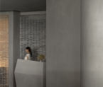 隨水流,海連于山,山映于天。一踏入二樓,水景波浪漸散,繼而在天花板留下起伏的水流的痕跡。清幽的泉水,疏寥的銅條,自然地使板前料理區(qū)與人流主通道分隔,客人可以在欣賞料理長專業(yè)的表演同時(shí)安心地品嘗食材的本味。
