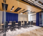 分散在餐廳不同角落的包廂,既保證了客人的私密也規(guī)避了人流的擁擠。拉開移門,包廂內(nèi)的落地鏡和不規(guī)則的實(shí)木板,營造了和外部走廊統(tǒng)一的氛圍。包廂略微幽暗的燈光透過夾娟玻璃,令人感覺靜謐而又溫馨。