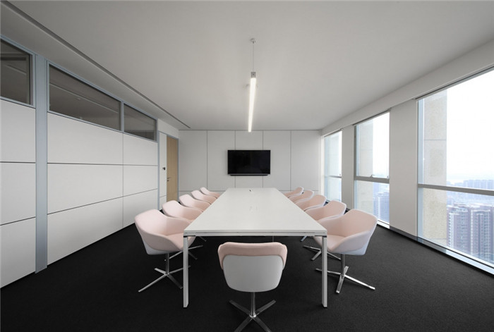 作為一家房地產(chǎn)開發(fā)企業(yè),具有作風(fēng)嚴(yán)謹(jǐn)、理性有序的特性。因此,辦公空間設(shè)計(jì)的基調(diào)定義為黑白色調(diào),簡(jiǎn)潔干練和理性,設(shè)計(jì)創(chuàng)造出一種天然的嚴(yán)肅和高格調(diào)的疏離感。同時(shí),透過(guò)一絲緊迫與壓力,更讓人有一種工作的責(zé)任感。在辦公家具的選擇上,點(diǎn)綴以暖色系的橙色、紅色,給人以積極、明亮、溫暖的心理暗示。