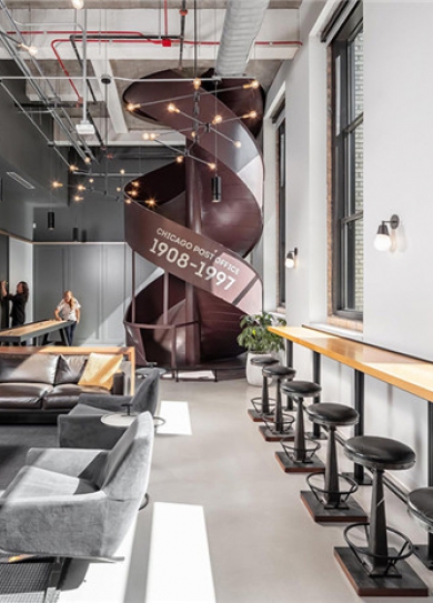 標(biāo)簽: 聯(lián)合辦公裝修設(shè)計(jì) 時(shí)尚聯(lián)合辦公裝修方案 READ MORE費(fèi)拉拉糖果制造商Ferrara Candy位于美國伊利諾伊州芝加哥的新總部,最近完成了改造裝修。新的辦公室位于空置已久的老芝加哥郵政局,為了紀(jì)念這座具有歷史意義的建筑,辦公室裝修設(shè)計(jì)團(tuán)隊(duì)強(qiáng)化了建筑的工業(yè)風(fēng)特征,如18英尺高的天花板、兩個(gè)老式的郵件滑槽和兩個(gè)計(jì)量重量的包裹秤。簡約凝練的工業(yè)風(fēng)以及中性化的配色,襯托著Ferrara旗下的35個(gè)品牌,讓它們各自以獨(dú)特的風(fēng)格完美呈現(xiàn)。 為了實(shí)現(xiàn)F