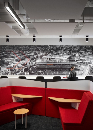 標(biāo)簽: 中餐廳裝修設(shè)計(jì) 新潮中餐廳裝修案例 READ MORE美國(guó)最大通信計(jì)費(fèi)服務(wù)公司CSG系統(tǒng)國(guó)際創(chuàng)立于1994年,CSG醒目的紅色標(biāo)識(shí)色和品牌元素鑄就了他們新工作場(chǎng)所的設(shè)計(jì)。強(qiáng)烈而鮮明的配色,從接待和休閑區(qū)就開始彰顯它強(qiáng)烈的視覺(jué)沖擊力,并輔以清爽的中性色和輕柔的木色來(lái)加以均衡。下面就跟隨鄭州辦公室裝修公司宏鈺堂裝飾小編一起來(lái)欣賞國(guó)外通信公司時(shí)尚辦公室裝修案例。 辦公設(shè)計(jì)團(tuán)隊(duì)與CSG的品牌團(tuán)隊(duì)緊密合作,在簡(jiǎn)約的走道和繁忙的會(huì)議廳等區(qū)域設(shè)計(jì)具有激勵(lì)