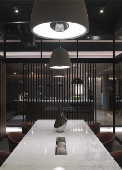 設(shè)計(jì)師框塑出細(xì)膩的美學(xué)品味,結(jié)合動(dòng)線規(guī)劃及視角比例的對比安排,將辦公室的優(yōu)雅引領(lǐng)出來。以深色沉穩(wěn)意象鋪陳,將其形塑為現(xiàn)代與時(shí)尚結(jié)合的場域,有了業(yè)者需求的格局與動(dòng)線后,再來就是空間性格的塑造。?利用衍伸的素材如玻璃及鏡面,透過質(zhì)地的反射輝映,增添視覺層次意象。
