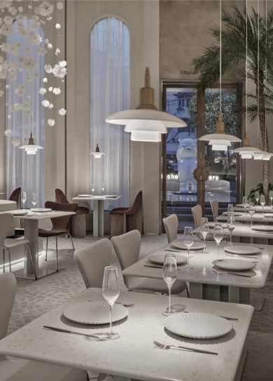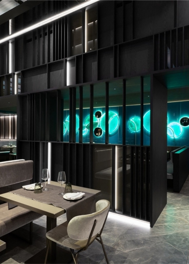 亞洲美食走出國(guó)門,在國(guó)際舞臺(tái)上會(huì)以怎樣的姿態(tài)展示?MOYA是一家時(shí)尚的當(dāng)代亞洲美食餐廳,占地面積超過(guò)1000平方米,分為兩層。餐廳裝修設(shè)計(jì)概念是由入口空間的巨大影響來(lái)定義的,在其中,發(fā)光,彎曲和垂直的燈光裝置主導(dǎo)著寬敞的空間,并在最大高度發(fā)展并上升到更高的高度。下面就跟隨鄭州宏鈺堂小編一起來(lái)欣賞設(shè)計(jì)師的奇思妙想吧!?How will Asian food be displayed on