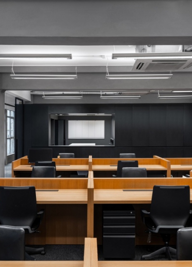 標(biāo)簽: 日式居酒屋設(shè)計 日式餐廳裝修設(shè)計 READ MORE這是街頭時尚品牌——“HI PANDA”辦公樓的室內(nèi)設(shè)計與外觀設(shè)計。辦公樓分為3層,位于上海市中心。場地形狀豎長,建筑和前面停車場合計全長約80米。辦公樓場地北側(cè)有一個專有的中庭,(與市中心其他地方相比)擁有較為優(yōu)越的外部環(huán)境條件。下面就隨鄭州專業(yè)辦公樓裝修公司宏鈺堂裝飾一起來欣賞?! ∥覀冊谧鲈O(shè)計時,為了充分利用豎長的室內(nèi)外環(huán)境,將最主要的地面層視作室內(nèi)外連同的空間。具體手法是,拿出了一層的