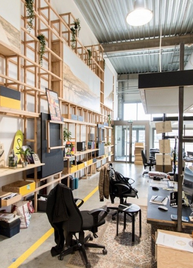 標(biāo)簽: 金香匯晚茶店裝修設(shè)計 廣式餐廳裝修設(shè)計方案 READ MORE該項(xiàng)目坐落在波爾多Sud Ouest報社的舊車庫中,是為活動策劃公司C?te Ouest打造的新辦公空間。下面就隨鄭州辦公室裝修公司宏鈺堂裝飾一起來欣賞下?! 」ぷ骺臻g被組織在幾個由大尺寸網(wǎng)格連接的子空間里。這些網(wǎng)格結(jié)合了多種用途,例如與木板結(jié)合作為儲物空間、陳列空間、裝飾或者偶爾使用的伸縮工作臺?! 」芾磙k公室上方設(shè)有一個夾層,俯瞰著辦公室的其他空間。夾層是該項(xiàng)目的一個重要部分:它提供了存儲