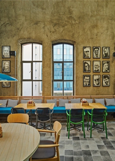 標(biāo)簽: 廣告公司辦公室裝修 策劃公司辦公室設(shè)計(jì) READ MORE位于伊斯坦布爾的第一座土耳其啤酒廠是由博蒙提兄弟在一百年前打造的。如今,這座占地近2000平方米的啤酒廠被Lagranja Design改造成了一家名為“平民主義者”的精釀啤酒廠和大型餐廳。餐廳設(shè)計(jì)團(tuán)隊(duì)旨在通過此項(xiàng)目讓顧客置身于一種民眾對政治問題群起反抗的精神氛圍之中。下面就跟鄭州餐飲裝修公司宏鈺堂小編一起去欣賞吧! 除了餐廳室內(nèi)裝飾之外,該項(xiàng)目的內(nèi)容還包括攝影和平面設(shè)計(jì)、定制家具設(shè)計(jì)和