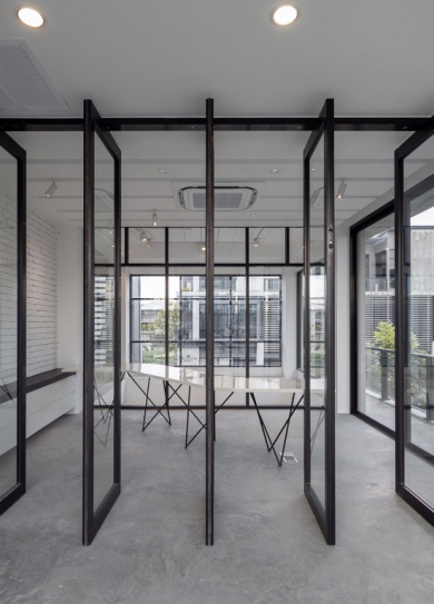 標(biāo)簽: 新中式餐廳裝修設(shè)計(jì) 特色連鎖餐廳裝修設(shè)計(jì) READ MORE“城中城”(Town In Town)距離曼谷市中心約15公里,是位于Sriwara路上的一個(gè)著名商業(yè)區(qū),周圍分布著眾多社區(qū)和公司。該項(xiàng)目的業(yè)主是幾位年輕的創(chuàng)業(yè)者,他們選擇了一座建造于2014年的四層高的半獨(dú)立建筑,希望將其改造為能夠適應(yīng)當(dāng)下需求的辦公場所。下面就隨鄭州辦公樓裝修公司宏鈺堂裝飾一起來欣賞?! ∫粚涌臻g的布局根據(jù)停車場的數(shù)量進(jìn)行了調(diào)整。橫梁下方的空間凈高約2.5米,只能用作接待空