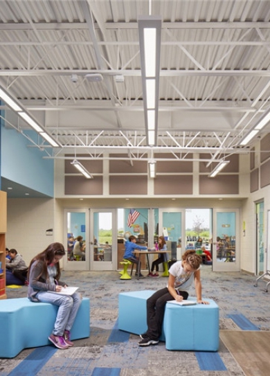 標(biāo)簽: 企業(yè)辦公室裝修 科技公司辦公室裝修案例 READ MORE兒童是人口組成的一個重要部分,但是他們基本上沒有什么政治權(quán)利。今天我們跟隨鄭州教育裝修公司宏鈺堂一起欣賞一個位于伊利諾伊州的公立學(xué)校街區(qū)小學(xué)裝修設(shè)計。設(shè)計團(tuán)隊了解到這里的孩子們多數(shù)都有著身體上的缺陷、面臨著生活上的困難、甚至還過著會留下心理創(chuàng)傷的生活,所以學(xué)校會定期舉辦一個類似于“早間簡報會”之類的活動,這個活動旨在幫助學(xué)生們釋放掉負(fù)能量,從而以一個嶄新的自己與同學(xué)們共同學(xué)習(xí)和玩耍。Childre