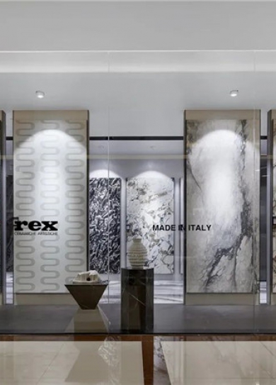 標(biāo)簽: 企業(yè)總部辦公樓裝修 上市公司辦公室裝修 READ MORE設(shè)計(jì)是能夠讓我們看見(jiàn)這個(gè)世界的窗口。所以在展廳裝修設(shè)計(jì)中,設(shè)計(jì)師傾向于深度挖掘產(chǎn)品背后的文化,盡情展示產(chǎn)品本身的魅力同時(shí),并在每一位客人的記憶里留下獨(dú)特的印記,這是設(shè)計(jì)師所期望的。今天鄭州展廳裝修公司宏鈺堂裝飾小編為大家分享的是意大利高端品牌——銳思瓷磚展廳裝修效果圖!極簡(jiǎn)的門(mén)頭造型與獨(dú)特的瓷磚紋理,形成濃烈對(duì)比;碩大且夸張?jiān)煨偷乃囆g(shù)雕塑品,成為空間的點(diǎn)睛之筆,一動(dòng)一靜之間,優(yōu)雅克制,奢華體驗(yàn)。入