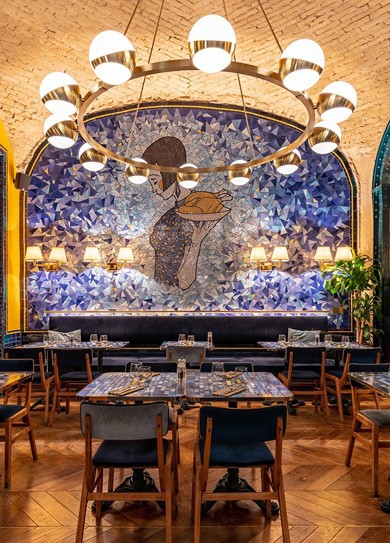 Hilda——一個(gè)以女性名字命名的燒烤餐廳,提供高品質(zhì)的農(nóng)場(chǎng)美食的燒烤。從命名的那一刻開(kāi)始,就注定了這是一個(gè)柔美的、具有女性特質(zhì)的用餐空間。在保留原建筑結(jié)構(gòu)的基礎(chǔ)下,設(shè)計(jì)師選用波西米亞風(fēng)格的空間帶來(lái)溫暖熱情的用餐氛圍。下面就和鄭州餐廳裝修設(shè)計(jì)公司宏鈺堂小編一起來(lái)走進(jìn)這個(gè)充滿驚喜的餐飲空間吧!原有空間有大量的穹頂和裸露的原始磚墻,所以鐵質(zhì)結(jié)構(gòu)成為了定義空間的主要元素。主用餐空間采用了純手工鋪設(shè)的巨大