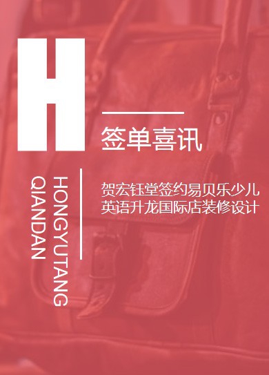 標(biāo)簽: 宏鈺堂公司動(dòng)態(tài) 宏鈺堂簽約喜訊 READ MORE千金難買(mǎi)好搭檔,易貝樂(lè)開(kāi)工忙忙忙!賀深圳宏鈺堂裝飾順利簽約知名少兒英語(yǔ)連鎖培訓(xùn)機(jī)構(gòu)——北京易貝樂(lè)鄭州升龍國(guó)際店。此次是宏鈺堂繼嵩山路店、中原萬(wàn)達(dá)店之后,與易貝樂(lè)的第三次合作。一切為了孩子,用心做教育,用心做工程,宏鈺堂是您最值得信賴(lài)的合作伙伴!